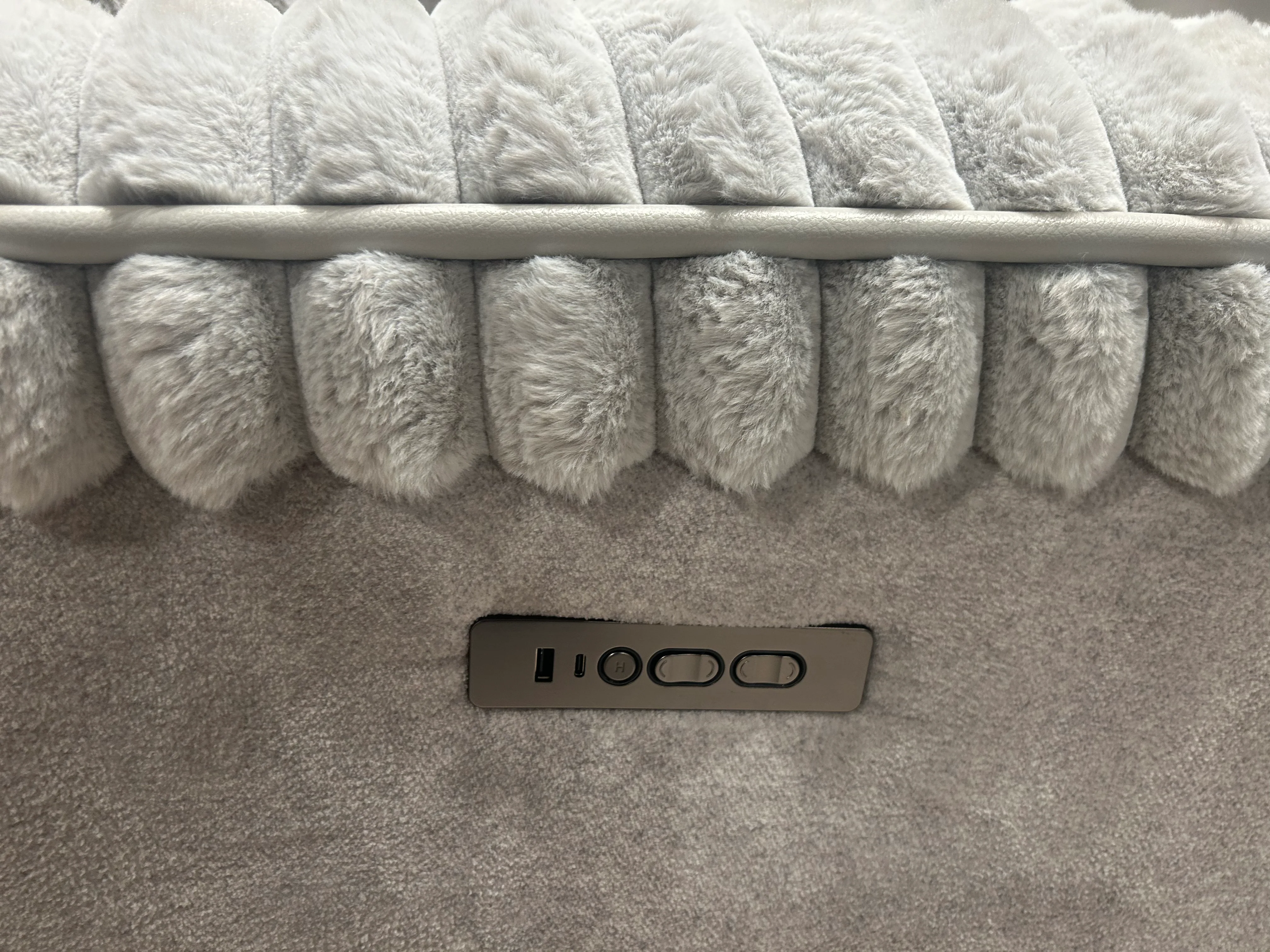 Indulge in the luxurious comfort of the Heavenly Power Recliner. With its rabbit fur-like covering and added pillow, sink into a cloud of relaxation. Stay connected with its USB and USB-C compatible charge while surrounded by the fluffy cotton. Experience ultimate indulgence in this sophisticated recliner. Dimensions 45W x 39D x 41H