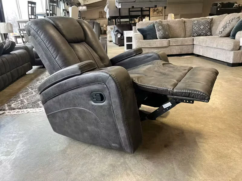 Conquer relaxation with the Mt. Ararat Recliner! Featuring a bomber jacket design, this recliner exudes boldness. The storage armrest and cupholders add convenience and functionality, making it perfect for your daring lifestyle. Sit back, recline, and embrace the thrill of comfort! Dimensions 38W x 40D x 41H